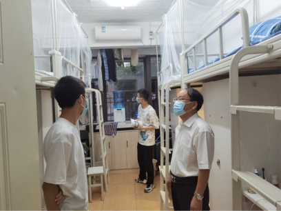 9月6日晚,周思柱副校长来到1号楼宿舍看望我院2021级本科新生,转达了校对新生的关心与问候,鼓励他们能尽快适应新生活,开启新征程。院党委书记刘逸、副书记郭启炜、2021级本科生辅导员李蒙陪同走访。