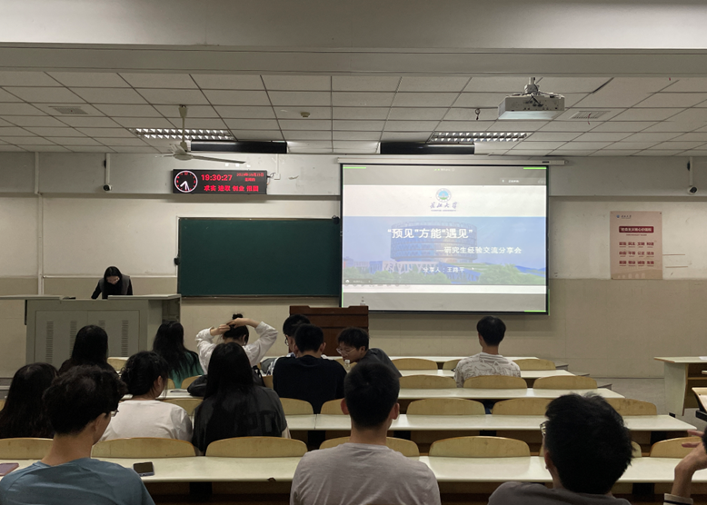 随后由电子信息学院王路平同学为大家分享的主题是“遇见,方能遇见”,她从个人介绍、研究生三年规划、论文经验分享、比赛经验分享、心得体会这五个方面向研一同学充分的诉说了她三年读研生涯的经历,她讲述的经历为在座的同学们避坑以及做好时间规划,警戒同学们找好方向、把握机会。