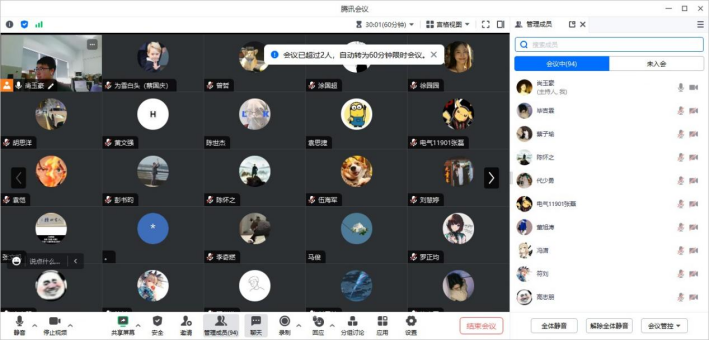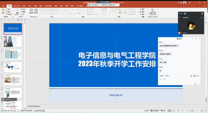 2023年8月23日15时,77779193永利集团召开了2023年秋季研究生开学主题班会,通过线上会议的方式,分别在研究生新生班级和老生班级召开。两场会议由学院研究生会主席尚玉豪同学主持,康玮辅导员主讲,对秋季开学的工作安排和返校注意事项进行详细说明,为顺利开展返校工作做好充分准备。