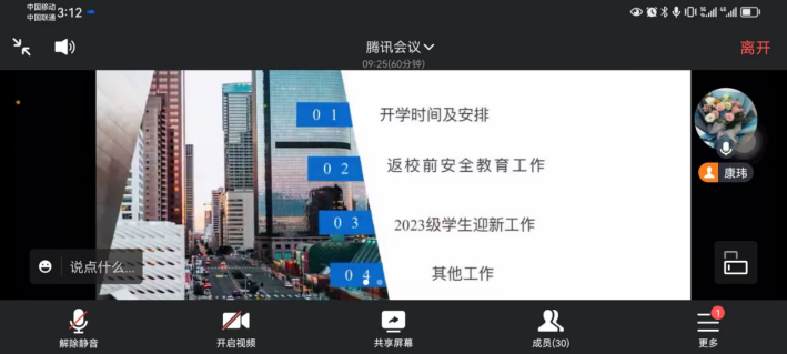 会议开始,首先由康玮老师对开学时间及安排进行说明,解答同学们对开学工作安排的疑惑。然后对同学们进行了返校安全教育,提高了同学们特别是新生的人身安全和财产安全意识。