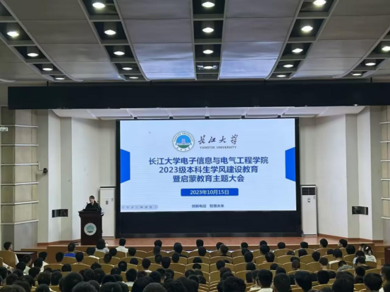 (通讯员 刘朝阳/文 杨明羽 谢雨轩 夏嘉言/摄)10月15日晚,学院在12教405报告厅召开2023级本科生学风建设暨启蒙教育主题大会。院党委副书记张晨露、学工办主任颜国琼、2023级全体本科生及高年级学生代表参加会议,会议由2023级年级辅导员朱锐主持。