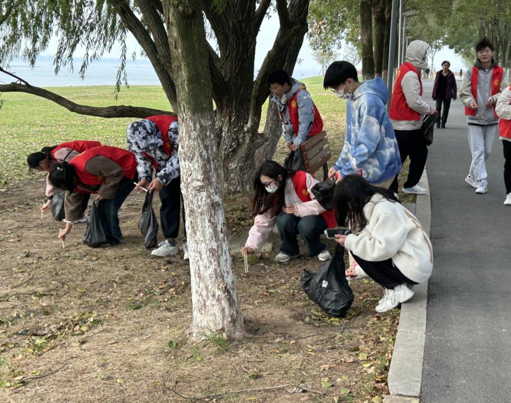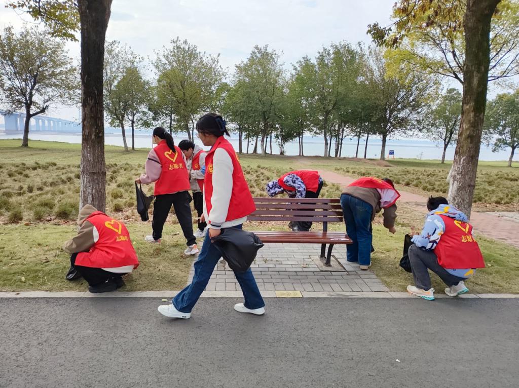 学院组织对滨江公园环境进行改善,清理路面上和草地上游客市民留下的塑料袋、烟头及其他杂物,为荆州市民创造一个优美卫生的公园环境,为文化传承尽自己的心力。