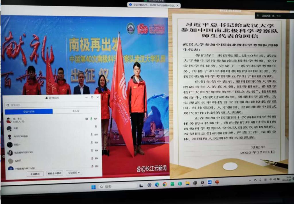 学院开展学习习近平总书记给武汉大学参加中国南北极科学考察队师生代表重要回信精神主题班会