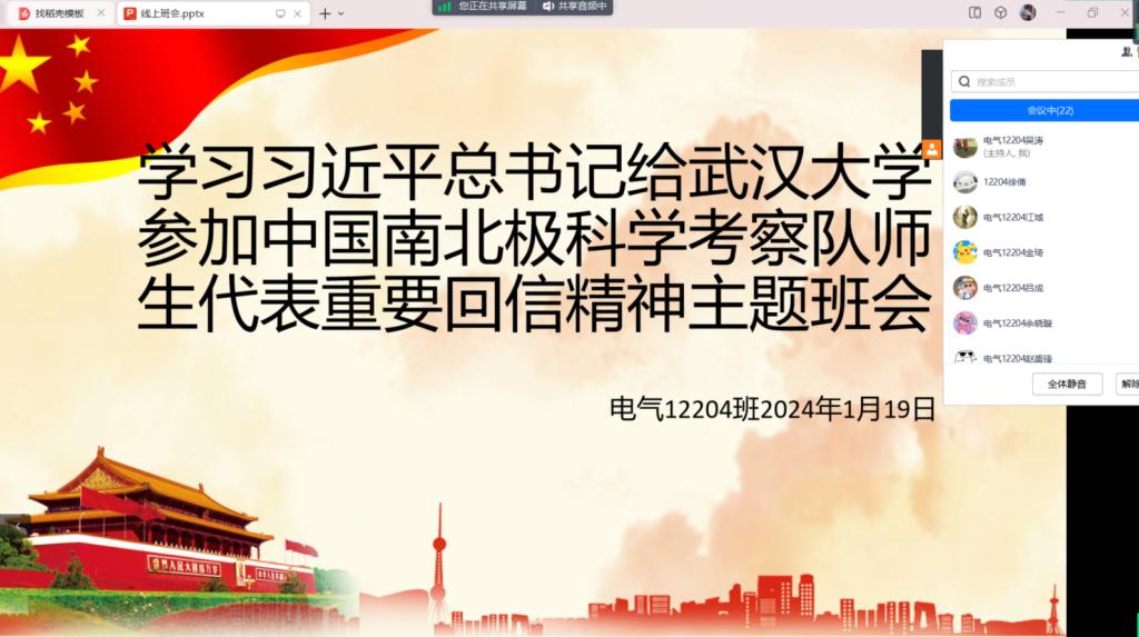 为深入学习习近平总书记给武汉大学参加中国南北极科学考察队的师生代表重要回信精神,引领青年学子牢记习近平总书记“胸怀‘国之大者’,接续砥砺奋斗,练就过硬本领,勇攀科学高峰”的殷殷嘱托,我院于1月19日至21日组织全体学生线上开展学习习近平总书记重要回信精神主题班会。