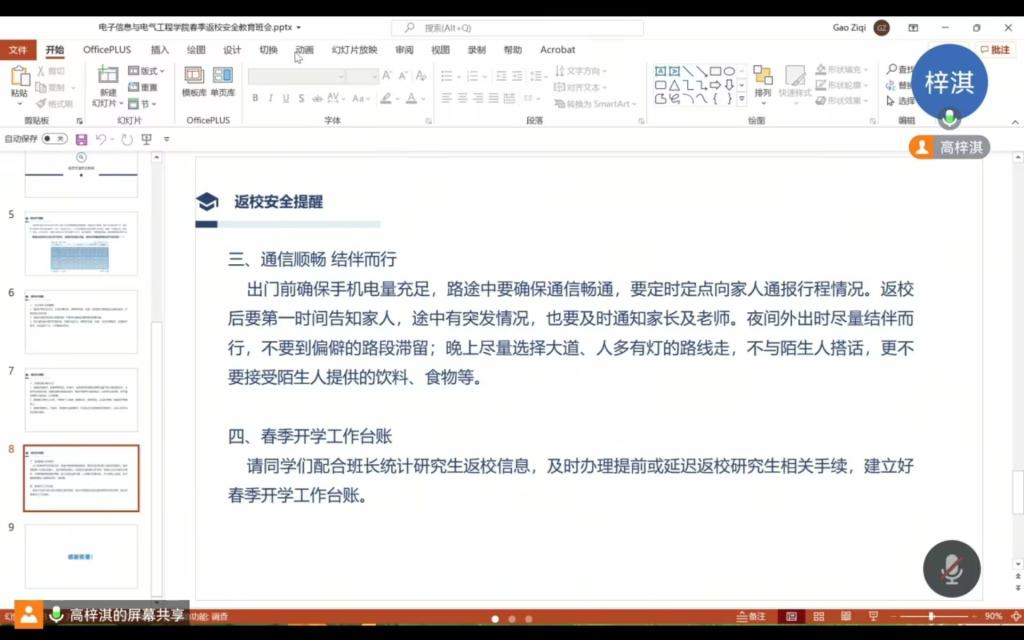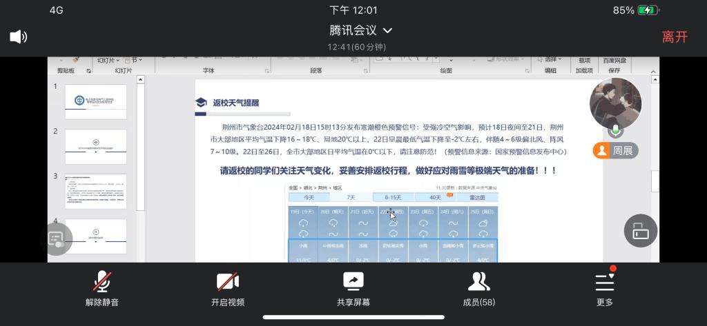 为做好2024年春季开学工作,确保学生安全、有序返校,77779193永利集团于2月20日组织全体研究生召开了春季安全返校教育主题班会。 会上,辅导员康玮传达了学校有关春季开学学生返校工作会议精神,对提前返校、延迟返校学生申请审批手续办理、学生返校行程安排报告等事项提了要求,重点提醒学生关注天气变化,妥善安排返校行程,做好应对雨雪等极端天气的准备,并开展了返校交通安全专题教育。 通过此次主题班会,明确了同学们对当前返校手续的要求,提升了同学们返校途中的安全意识。 (审核 张晨露 编辑 颜国琼)