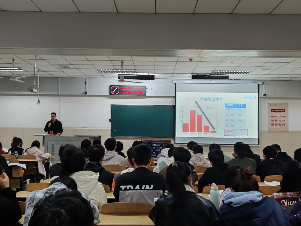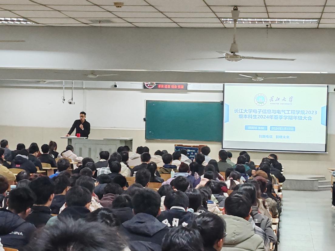 (通讯员 李悦嘉 朱锐)新学期新征程。为帮助同学们制定新学期学习计划,更好地备考英语四级,学院于3月17日晚召开2023级本科生春季学期年级大会暨英语四级动员会,辅导员朱锐老师、学工办主任颜国琼老师及2023级全体本科生参加大会。