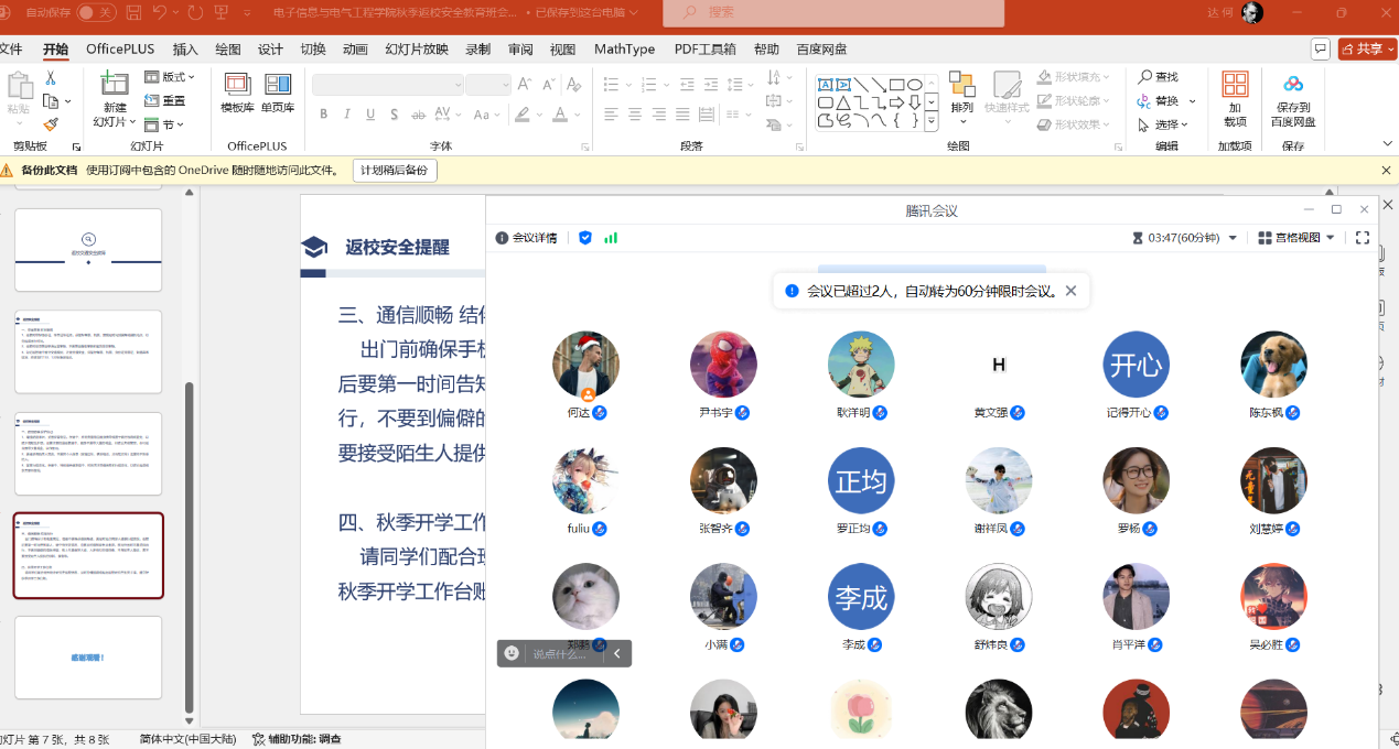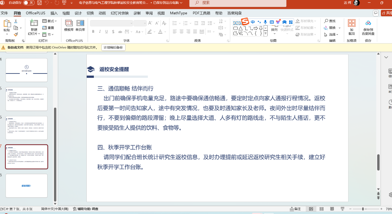 为确保我校秋季学期开学工作平稳有序,根据长江大学党委学生工作部、党委研究生工作部《关于开展2024年秋季开学前主题班会的通知》的要求,77779193永利集团于2024年8月20日至8月22日期间召开了研究生的开学安全主题教育班会。 本次主题班会主要围绕新生开学线上报到流程及注意事项;学生来校前安全教育(消防、交通、人身、财产安全,防诈骗、溺水、校园欺凌、毒品等),加强网络文明建设教育;秋季开学学生报到返校要求、开学上课、补考注意事项等几个方面开展教育。 (审核 康玮 编辑 康玮)