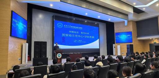 周院长围绕国家级电工电子示范中心和学科竞赛相关的内容展开了细致的讲解。以“为什么要参加学科竞赛?”“电信学子的学科竞赛有哪些?”“如何参加学科竞赛?”三个问题为引,引用习近平总书记给中国国际大学生创新大赛参赛学生代表的回信内容,为同学们讲解了参加学科竞赛的意义,并逐一分析了电信学子能够参加的学科竞赛种类、主办单位、赛事特点、参与方式等。