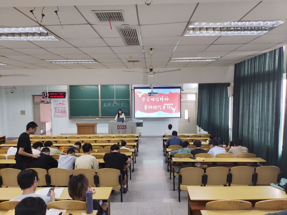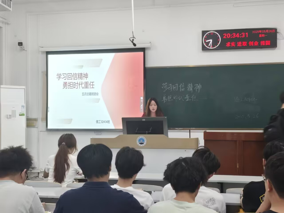 通信12201团支部于5月26日上午10点在13教A101教室举行了班团会。会议伊始,主持人彭义豪同学向同学们展示习近平总书记给新疆阿图什市哈拉峻乡谢依特小学戍边支教西部计划志愿者服务队全体队员回信,以研讨会的形式让同学们去深刻领悟习近平总书记重要回信的精神实质和丰富内涵,坚定理想信念,把牢听党话、跟党走的青春航向;厚植家国情怀,坚持报效祖国、服务人民的价值取向;练就过硬本领,树立扎根基层、岗位建功的成才导向;发扬奋斗精神,激发永久奋斗、无私奉献的人生志向,到祖国和人民最需要的地方发光发热。