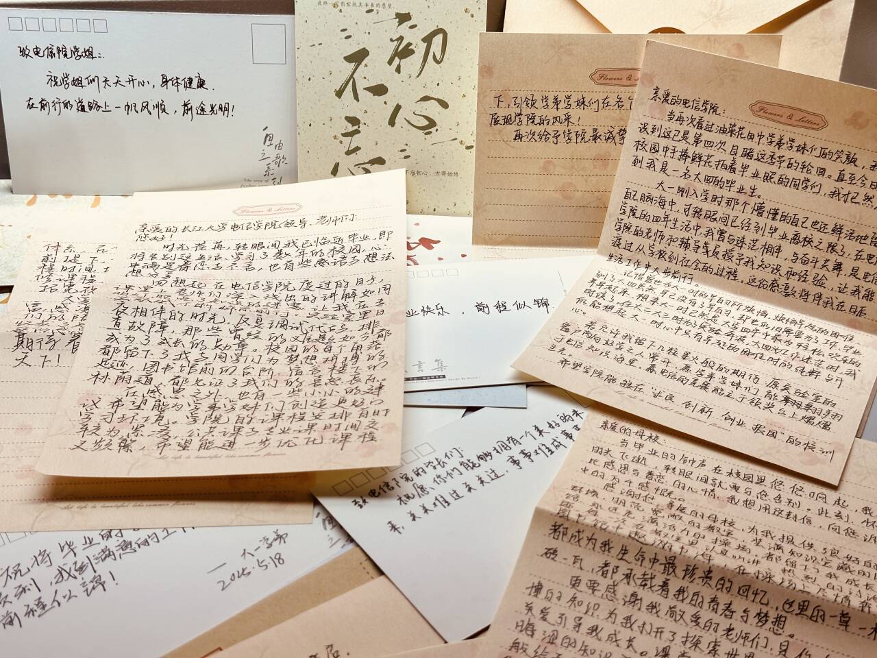 为深化“谈心育人”工作内涵,营造温馨和谐的毕业氛围,5月17日至30日,学院举办“纸短情长 拾忆青春”2025届毕业生书信传情心语活动。活动以书信为载体,通过师生、同窗间的双向寄语,传递感恩与祝福,共收到信件40余封、祝福明信片20多张,纸笺载深情,笔墨凝厚谊,为毕业生留下一份独特的青春记忆。