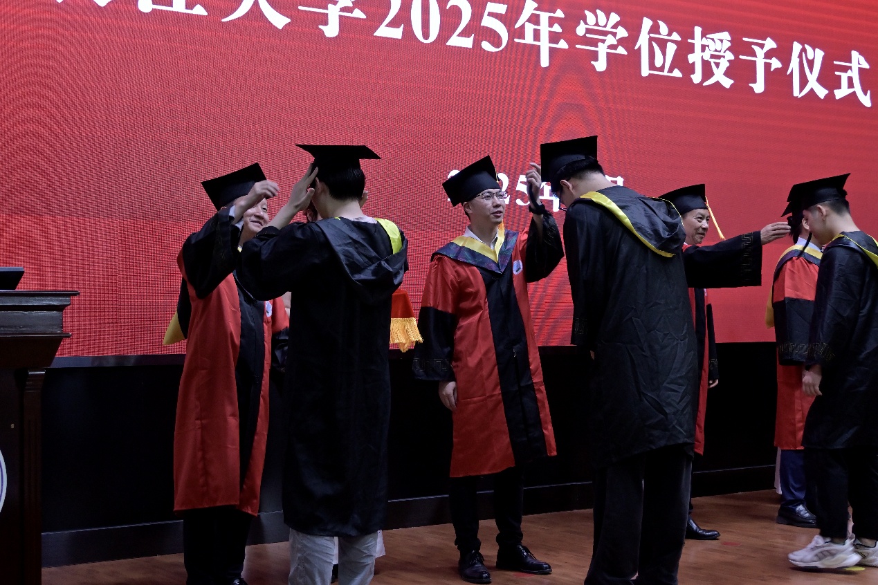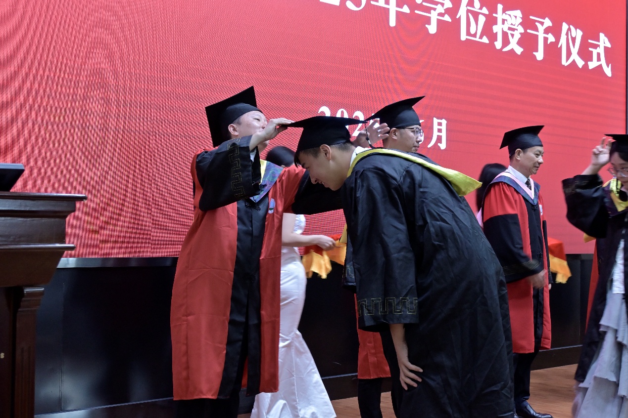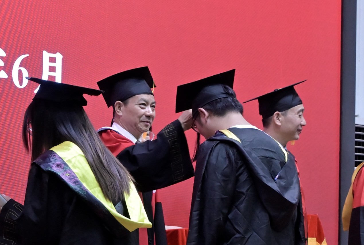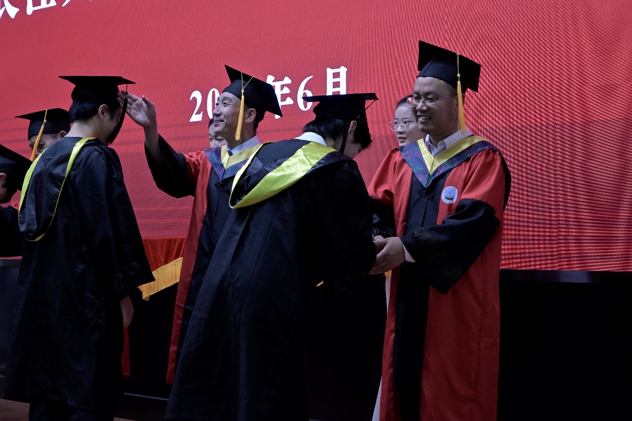 6月16日,学院毕业典礼暨学位授予仪式隆重举行。党委常委、党委组织部部长、党委统战部部长李应军,院长罗明璋,副院长魏勇、蒋涛、周箩鱼,党委副书记张晨露等莅临现场,学院全体辅导员、毕业生家长代表参加典礼,230余名博士、硕士和本科毕业生代表齐聚一堂,在师长亲友的共同见证下,导师们为毕业生逐一拨穗正冠,流苏从右至左的摆动,见证着学子们从青涩到成熟的蜕变,标志着人生新篇章的开启。