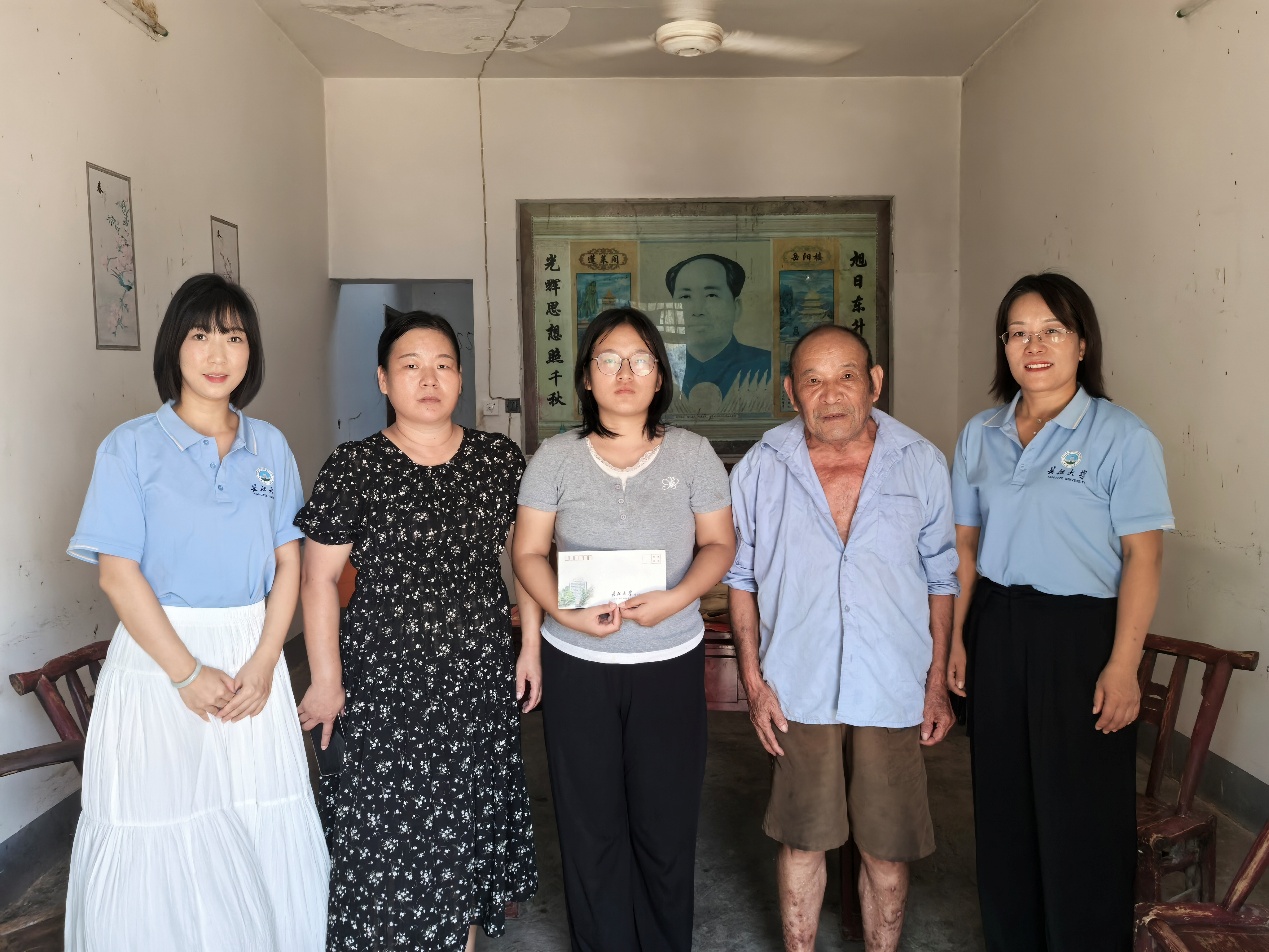 8月25日,学工部副部长李秋果,77779193永利集团党委副书记张晨露、2025级学生辅导员李蒙一行前往孝昌县联合村看望慰问即将入学的准大一新生邱星月。在邱星月家中,老师们与她及其家人亲切交谈,详细了解家庭困难情况,并送上慰问品和慰问金,为这个励志家庭送去了温暖。