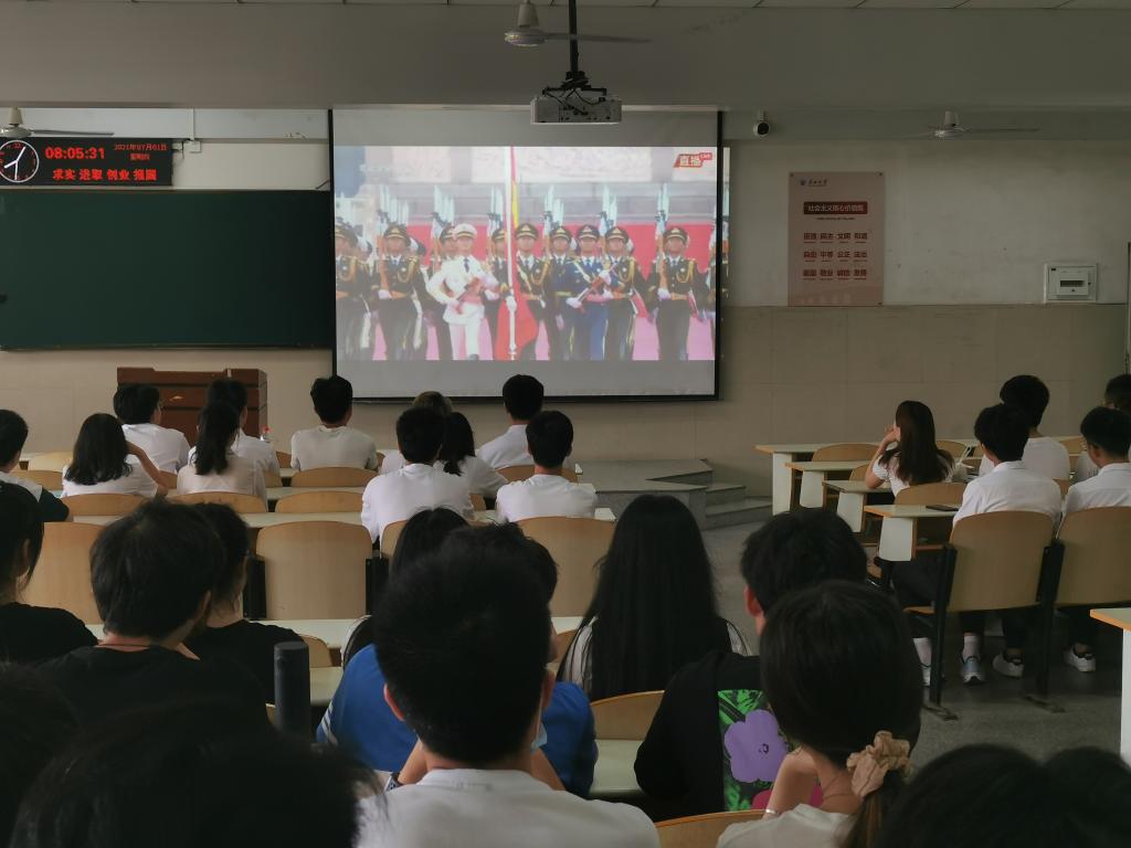 7月1日上午,电子信息学院全体学生党员在12教104观看庆祝中国共产党成立100周年大会,共同见证中国共产党成立100周年这一伟大的时刻。