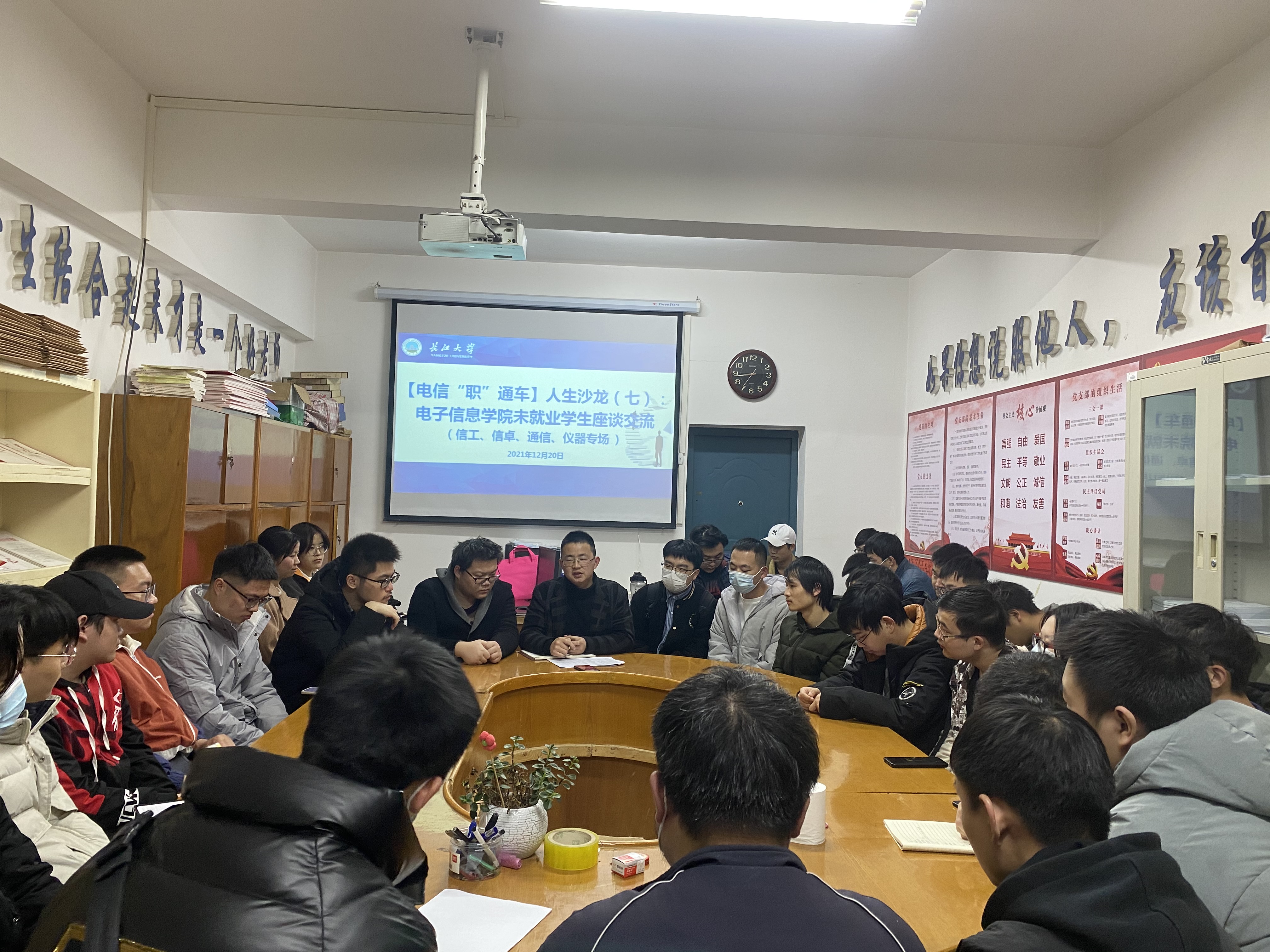 为了解学生就业意愿,倾听求职诉求,充分为学生提供针对性的建议。12月23日晚,学院于党员活动室为未就业学生开展求职指导,现场为学生提供答疑解惑工作,年级辅导员王齐禄老师和学院就业专干沈马锐老师参与座谈。