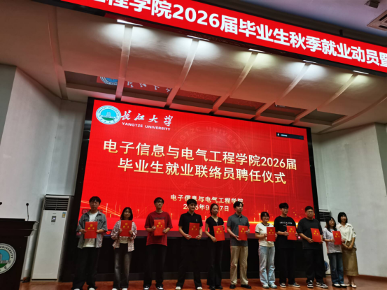 会上,副院长魏勇与党委副书记张晨露为2026届毕业生就业联络员颁发聘书,并勉励就业联络员承担起学院与毕业生之间的“桥梁纽带”作用,及时传递招聘信息、反馈学生求职需求,高效推进学院就业工作。