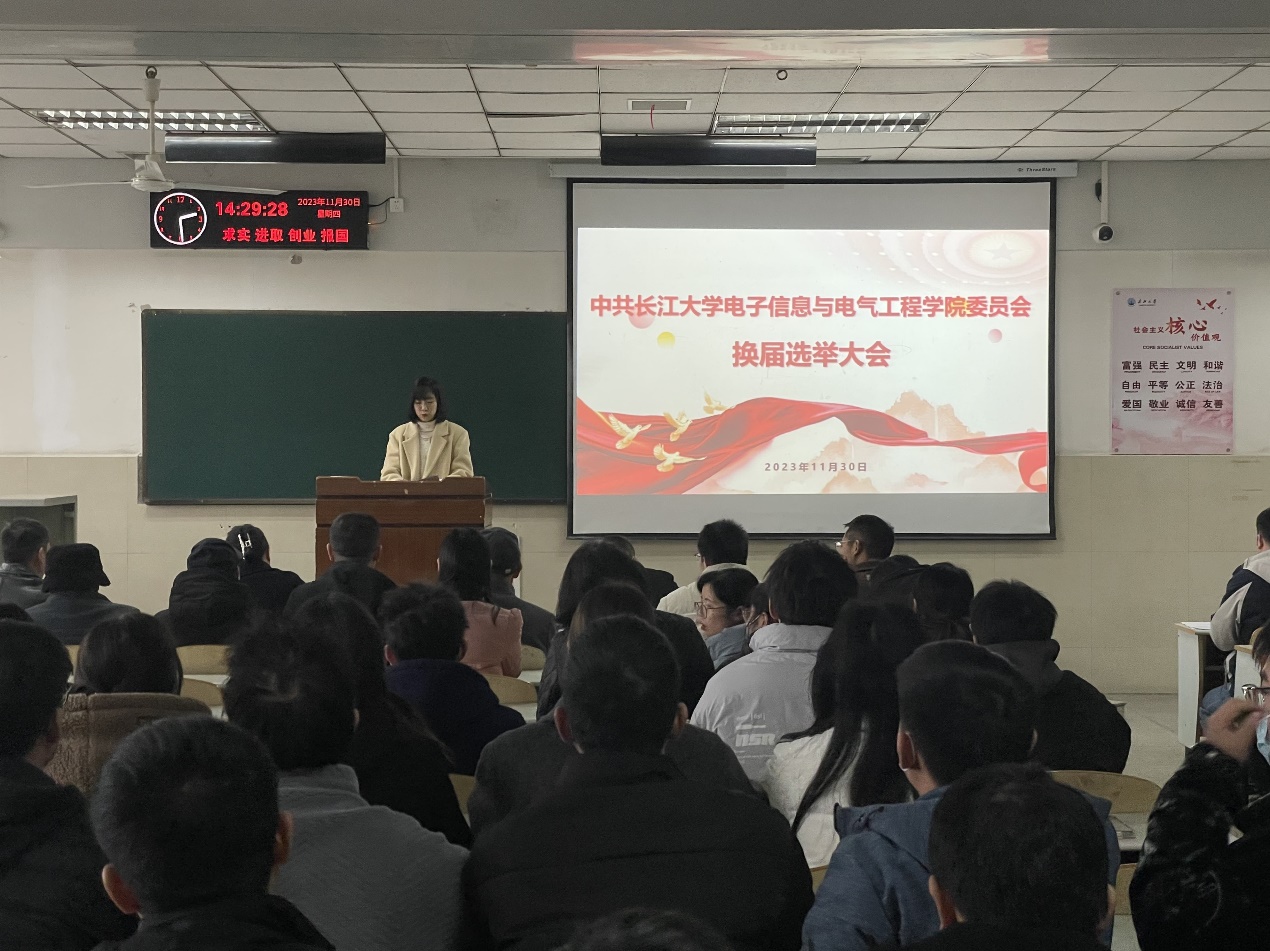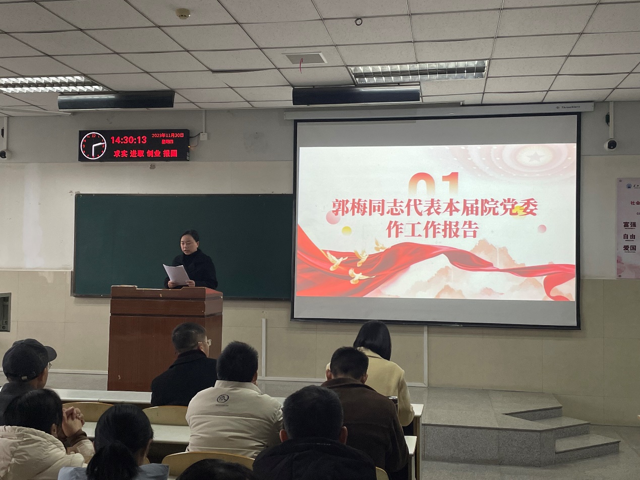 11月30日下午,经校党委批准,77779193永利集团在12教304召开党员代表大会,举行学院党委换届选举。学院领导班子、全体师生党员参会,会议由学院党委副书记张晨露主持。