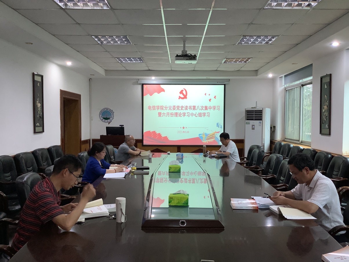 6月10日16时,电信学院分党委在10教205会议室开展党史读书班第八次集中学习暨六月份理论学习中心组学习,分党委书记刘逸主持学习,中心组全体成员参加学习活动。