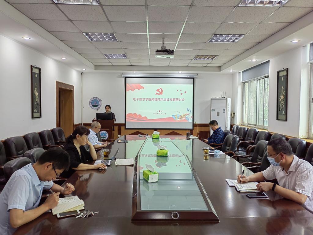 2022年4月12日上午,电信学院领导班子在10教205会议室召开党风廉政建设和师德师风建设专题研讨会,会议由分党委书记刘逸主持,院长孙祥娥、副院长蔡昌新、陈永军、吴爱平和分党委副书记郭启炜参加会议。