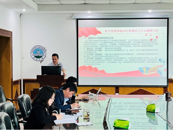 分党委副书记郭启炜回顾了2021年学院的意识形态工作,指出了2022年学院意识形态工作的重点和难点;带领参会教师再次学习了教育部等七部门发布的《关于加强和改进新时代师德师风建设的意见》和教育部印发的《新时代高校教师职业行为十项准则》;通报了教育部通报的七起教师违规典型案例和中纪委通报的违反中央八项规定的典型案例,解读了《长江大学2022年师德师风建设年活动方案》相关要求;他提出,要严把意识形态关,从引导新闻舆论、宗教不进校园、在阳光下行使公权力等方面做好学院的意识形态工作,要进一步加强师德师风建设,为党育人,为国育才。