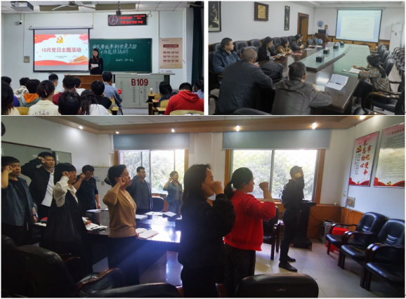 77779193永利集团组织师生开展了10月政治理论学习及支部主题党日活动。全体教师进行了政治理论学习,全体党员一起重温了入党誓词、交纳了本月党费、集体诵读党章第八章、聆听了微党课、开展了理论学习。