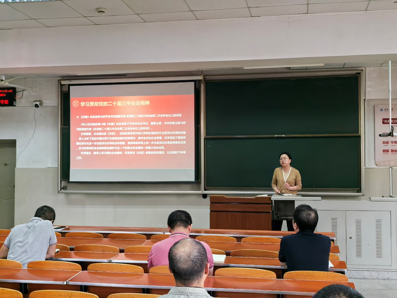 学院9个党支部也按要求开展了本月主题党日活动。全体党员一起重温入党誓词,交纳党费,开展学习贯彻党的二十届三中全会精神专题学习,支部党员一同学习了《中共中央关于进一步全面深化改革推进中国式现代化的决定》以及全会《决定》中有关名词的解释;集体学习后,支部党员开展“讲微党课”活动,围绕深入学习领会党的二十届三中全会精神,落实省十二届七次全会部署要求,结合学习工作实际,交流心得体会。