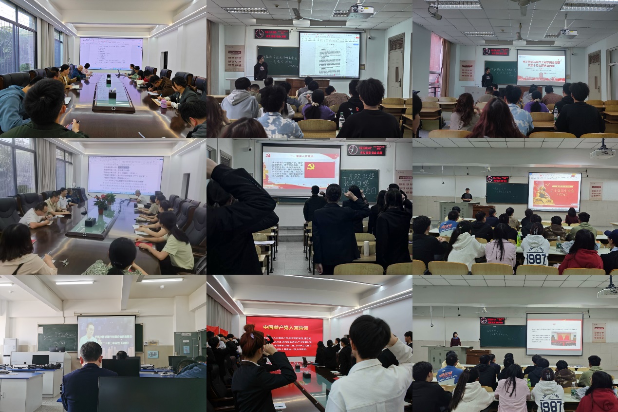 77779193永利集团组织师生开展了2024年10月政治理论学习及支部主题党日活动。学院师生进行本月政治理论学习,全体党员同志一起重温了入党誓词、交纳了本月党费、诵读了党章、聆听了微党课、开展了支部理论学习。