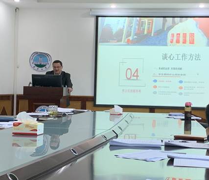 会议第四项,郭书记部署本学习与学生“面对面谈心”的工作,详细讲解了谈心的技巧。要用真诚的态度,学会倾听学生的心声,理解学生。