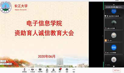 2020年6月4日,为引导大学生做一个有诚信、敢担当的人,树立诚信意识,2020年电子信息学院诚信教育主题班会因疫情防控工作的需要在线上召开。电信学院党委副书记郭启炜老师、电信学院2018级辅导员王齐禄老师、康玮老师、2019级辅导员万谦老师、电信学院2018级及2019级全体同学参加了此次主题班会。