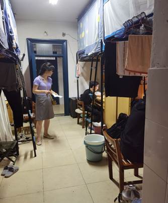 本次查寝一是检查学生是否安全返校,二是了解学生寝室是否存在安全隐患。查寝过程中,老师发现学生基本安全返校、寝室干净整洁,部分学生寝室浓郁的学习氛围让查寝的领导和老师都感到欣慰。张鑫老师在走访过程中还亲切地与学生交谈,询问毕业年级就业情况、二战情况以及寝室是否存在安全隐患并将学生的情况进行了详细的记录,叮嘱学生注意用电安全和财产安全并鼓励学生积极找工作,努力备考争取二战上岸。
