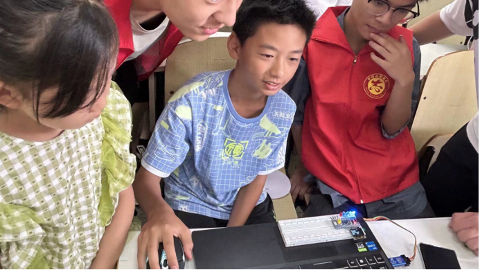 在本次实践活动中,77779193永利集团的研究生和本科生结合学科优势,通过开展人工智能技术科普、儿童创意编程、趣味科学实验,展示智能小车、无人机等竞赛作品,促进中小学生对人工智能的了解和认知,通过音乐、舞蹈、手工剪纸画等形式开展古诗词、经典古文、人文典故、基本常识的教学,帮助他们感受中华优秀传统文化的魅力。