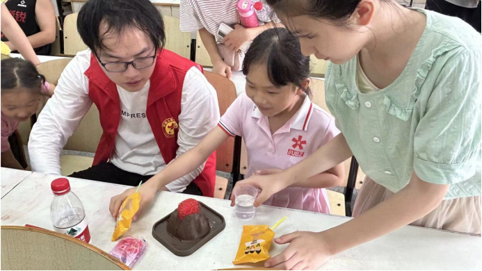 图为“愿益”团队成员进行开展趣味科技实验—海底火山