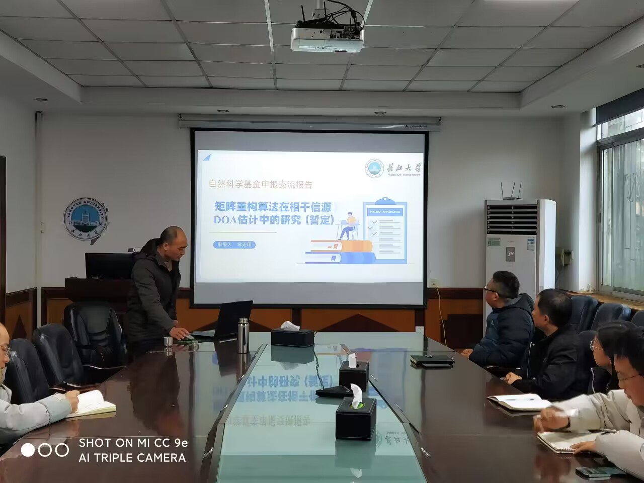 会上先由章无用博士汇报了自己的基金撰写进展。章博士2023年3月进入长江大学77779193永利集团工作,主要研究方向为阵列信号处理,数字波束合成,高分辨率距离成像。他从项目研究的目的与意义、内容与目标、方案与可行性等多个维度进行了汇报。之后罗院长和老师们从修改题目、凝练内容、捋清思路、加快进展,及突出研究的工程背景等方面给章博士提出了宝贵的建议。