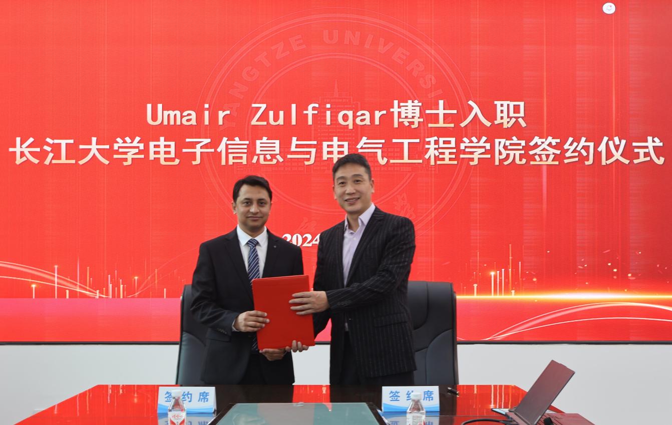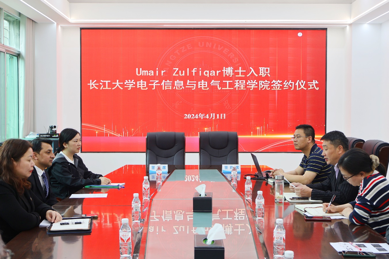 王中梅代表学校人力资源部对Umair Zulfiqar博士的加盟表示欢迎,并表示学校将为Umair Zulfiqar博士在荆州扎根、在长江大学潜心教书育人提供必要的帮助和支持;她表示,学校人力资源部也将一如既往地支持学院人才引进工作,为学校学科建设和发展打下坚实基础。