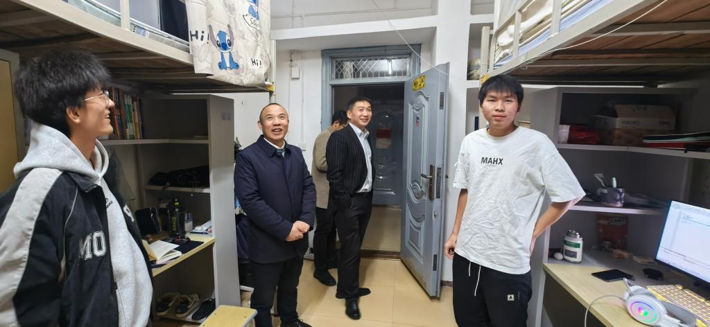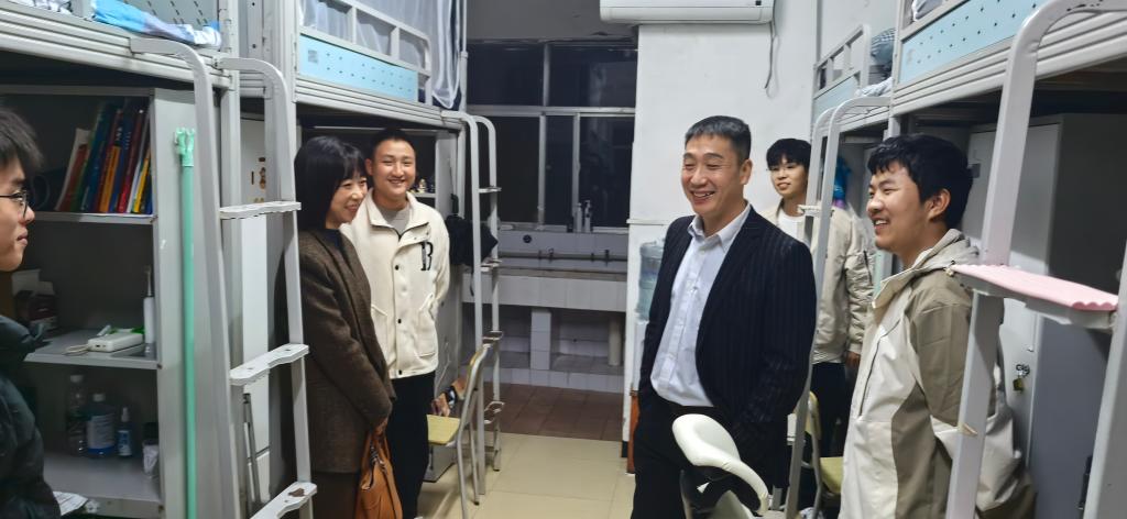 会议结束后,本科生院院长龚权、电信学院院长罗明璋、党委副书记张晨露在年级辅导员朱锐老师的陪同下到学生宿舍看望慰问学生。