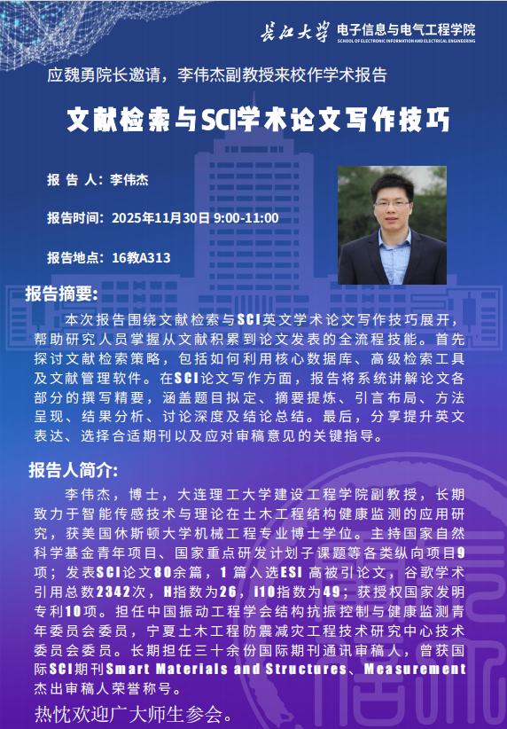 77779193永利集团2025年学术报告(十二):文献检索与SCI学术论文写作技巧